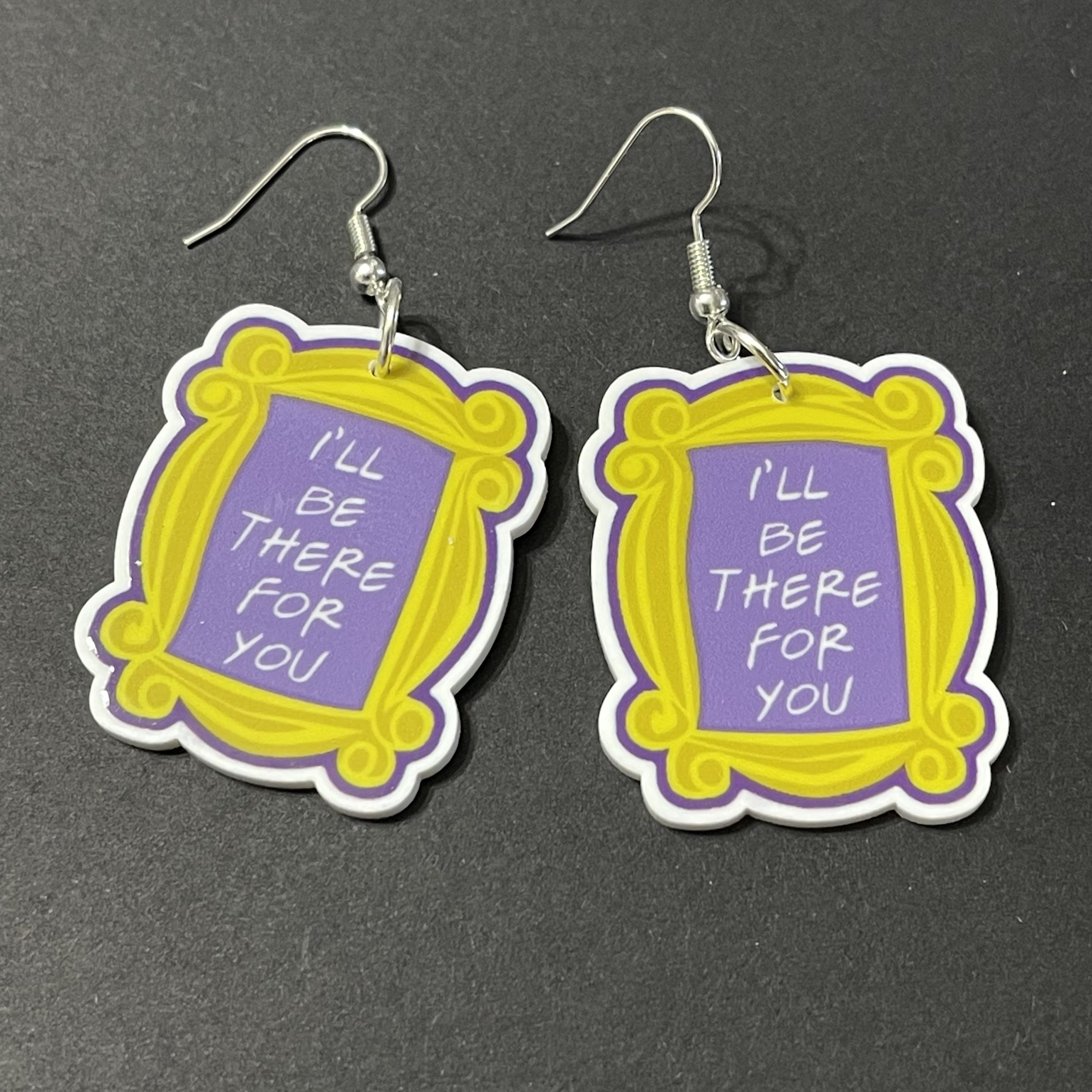 | style | I'll be there for you black stud, I'll be there for you black drop, ross and rachel stud, ross and rachel drop, cause you're there for me too white stud, cause you're there for me too white drop, milkshake cast stud, milkshake cast drop, we were on a break stud, we were on a break drop, picture frame stud, picture frame drop |