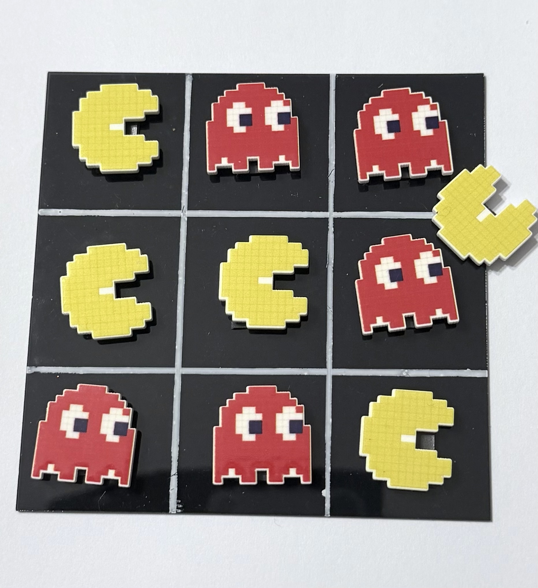 Acrylic 10cm by 10 cm back board with magnetic pacmans and monsters